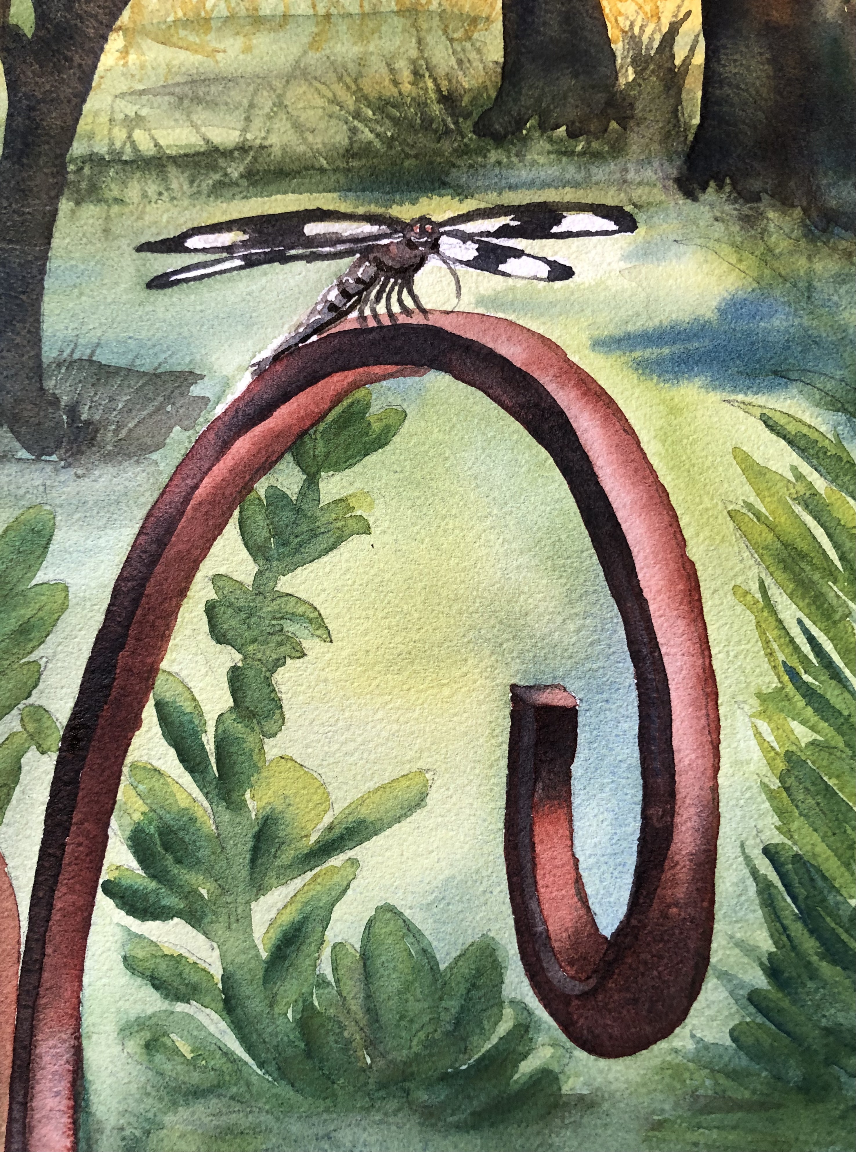 The Common Whitetail Dragonfly has striped wings. Christelle Falk took the reference photo of this one for me.